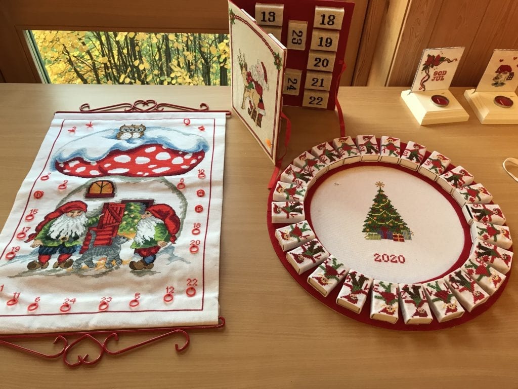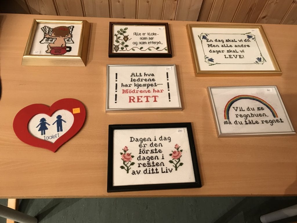 De er i Klokkergarden 8. oktober, 22. oktober og 5. november kl. 18.00 – 21.00. Julemessa er planlagt 20.-22. november, men den avhenger av koronasituasjonen. I galleriet under kan du se noe av håndarbeidet som er til salgs: