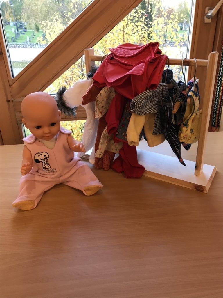 Premiene er brodert juleduk, dukke med klær, samt et dukkehus med møbler og lys.