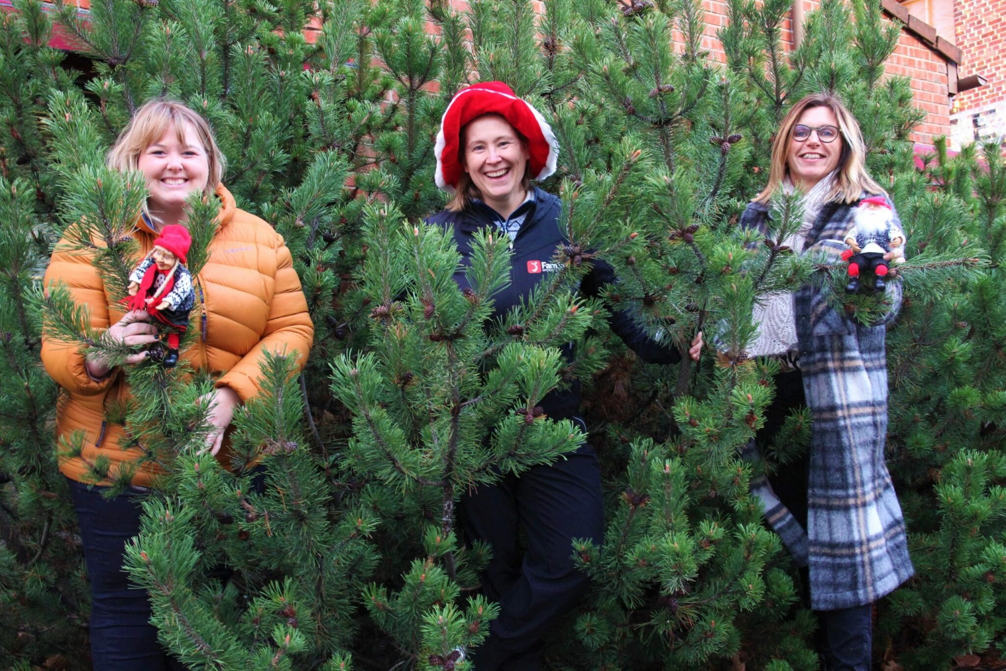 Marte, Kristin og Berte vil ha bedriftene med på å pynte Løten til jul