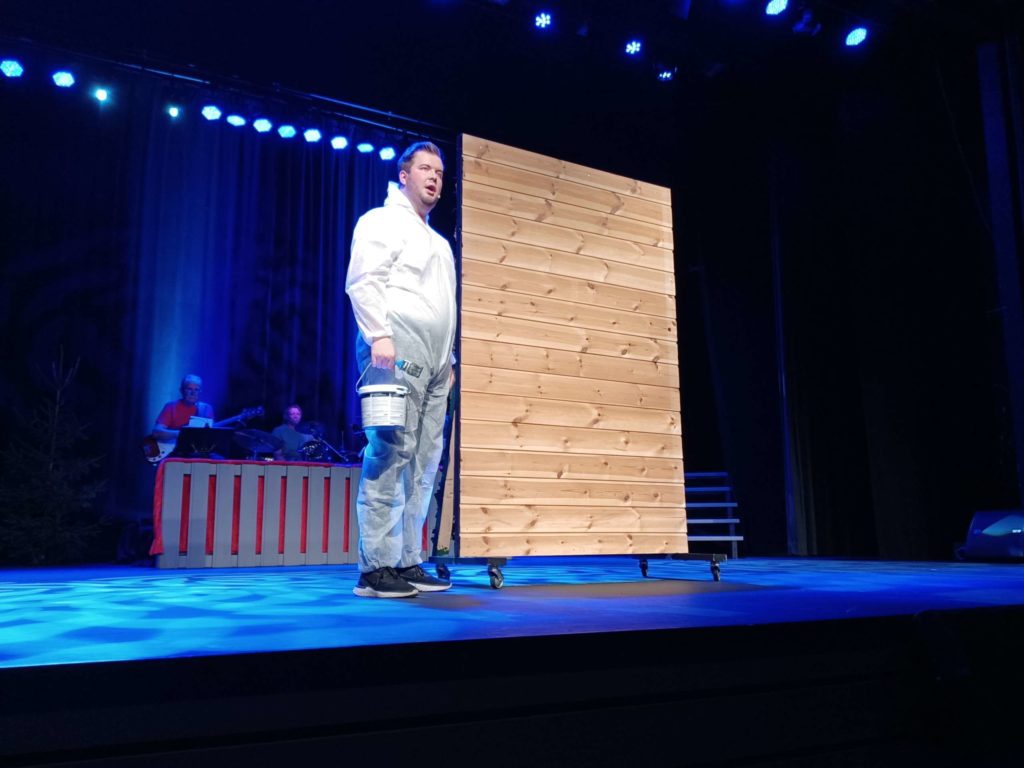 Revysjef Tommy Jørgensen tok seg tid til en kort prat rett etter forestillingen. En sliten men glad revysjef som var fornøyd med premieren.