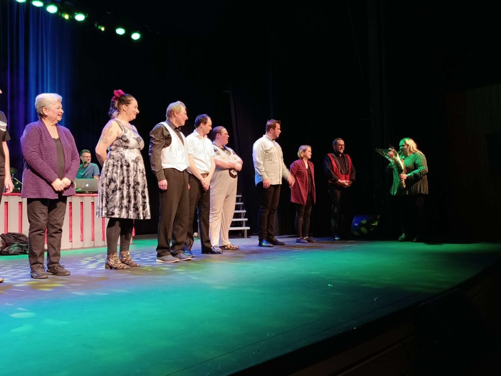 – Takk til publikum og takk til alle på og rundt scenen. Dette var fantastisk! sa en rørt revysjef, før han dro med sin gjeng til premierefest.