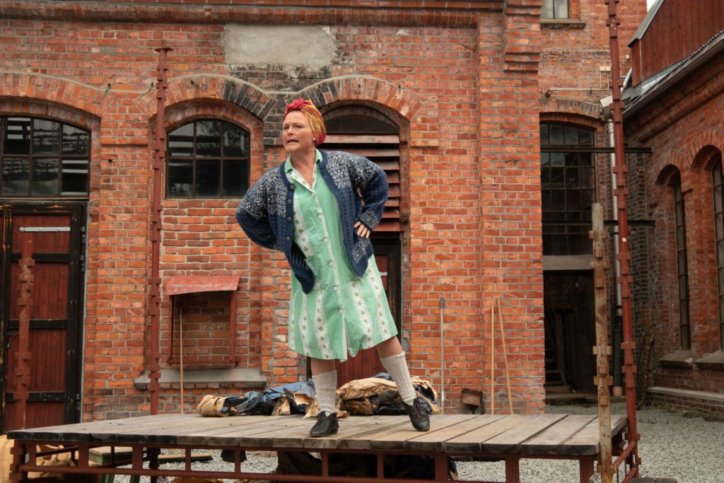 Scenografien til stykket er uslåelig. Den røde teglsteinsbakgården med fabrikkpiper er vakker mot det grønne gresset og Svartelva som renner forbi. Det var omlag 100 tilskuere som satt med en meters avstand. Og været på søndagens forestilling var strålende. Lørdagsforestillingen hadde vistnok vært en våt affære. Men, flott var det å sitte i bakgården ute og nyte syngespillet i autentiske omgivelser.