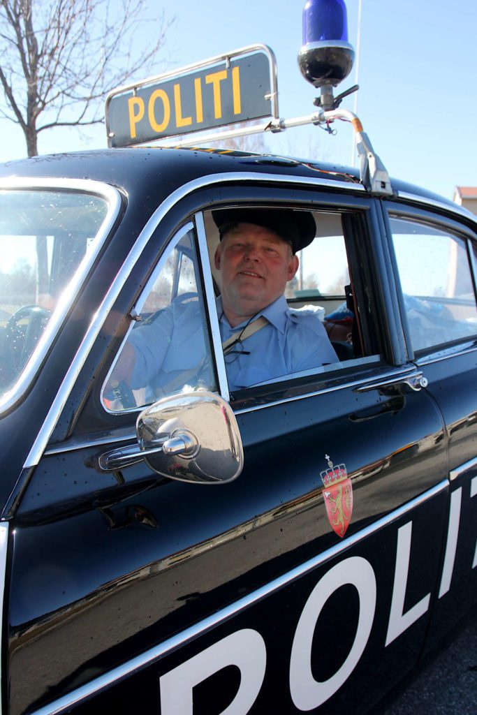 Politibilen er en Volvo Amazon 1966-modell. Den forrige politibilen var fra 1962. Selv om de har gått i Drammen og Sarpsborg måtte han ikke langt av lei da han kjøpte dem.