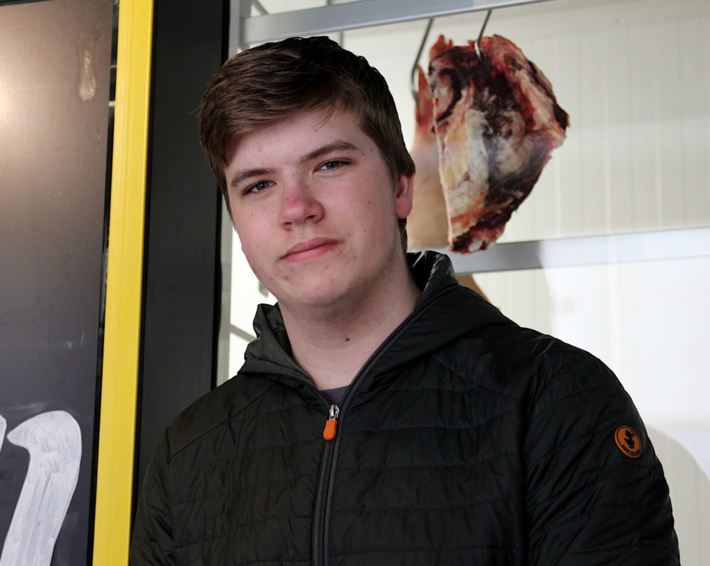 – Jeg skulle egentlig ikke bli institusjonskokk, men slakter. Så ble jeg kalt inn til sesjon og da tar jeg lærling og førstegangstjeneste samtidig. Egentlig har jeg tenkt å bli ferskvarehandler, men det skader ikke med to fagprøver, sier Sveen.