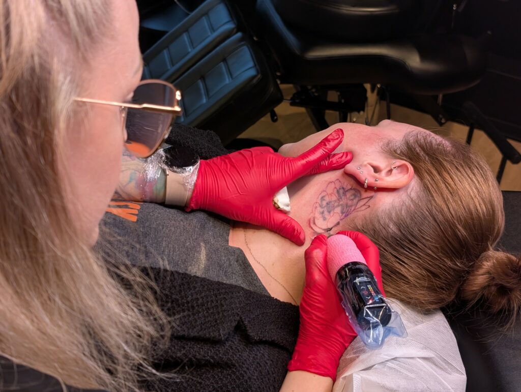 Linden, som denne dagen får dekket sin gamle tatovering, planlegger allerede neste motiv.
