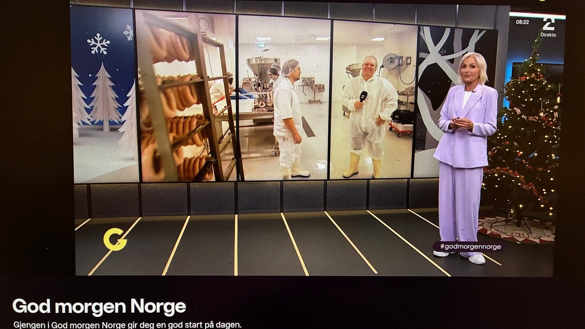 DIREKTE PÅ TV2: Tommy Østhagen er stadig vekk på besøk hos God Morgen Norge, her besøker kanalen de nye produksjonslokalene på Furuset. Skjermdump TV2 / Metervare