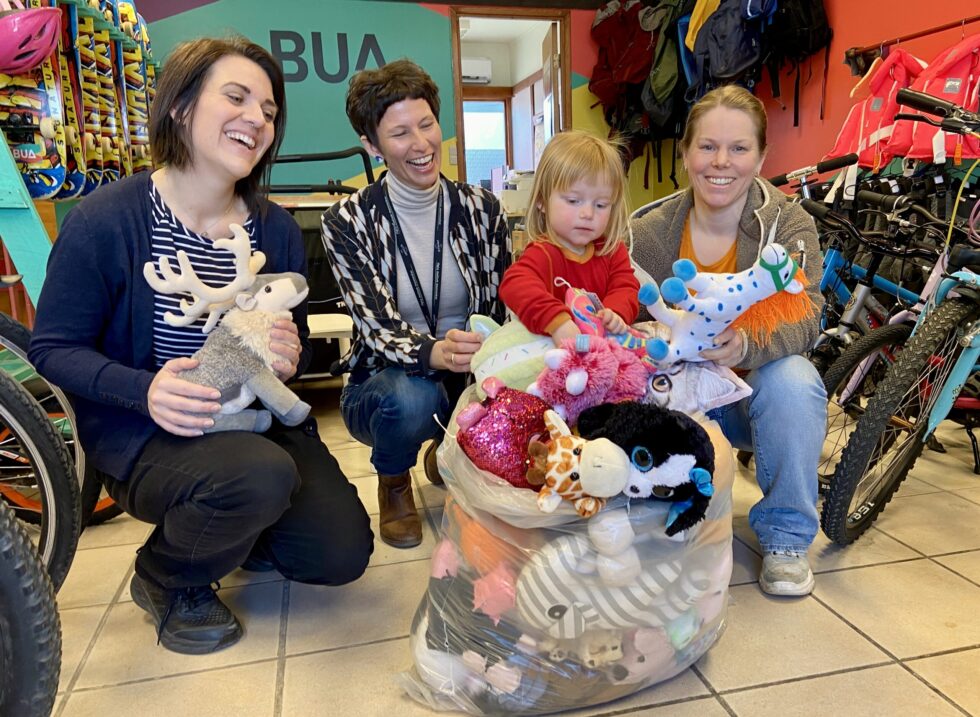 GODT SOM NYTT: Pent brukte leker er akkurat like morsomt som nye, fastslår Silje Margrethe Tvihaug, Trine Fjeldstad Kazemba og Solvei Cottis Hoff, med datteren Edda.