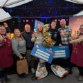 MER STØTTE: Sølve B. Fuglset, Terje Olsrud og Anders Landgaardshagen tok imot prisen fra Nordbygdarevyen ved Hege og Stian Berget. Foto: Ann-Kristin Nybakk Djuve