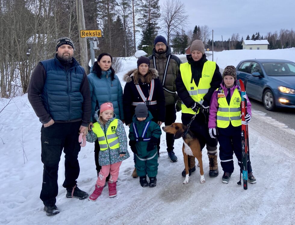 BEKYMRET: Fra venstre Erik Enger og Maren Palerud med datteren Inger, Stine og Carl Morten Karterud med sønnen Lucas og Mariann Olafsen med Carina, som er skolejente og tar bussen fra Reksla-krysset.