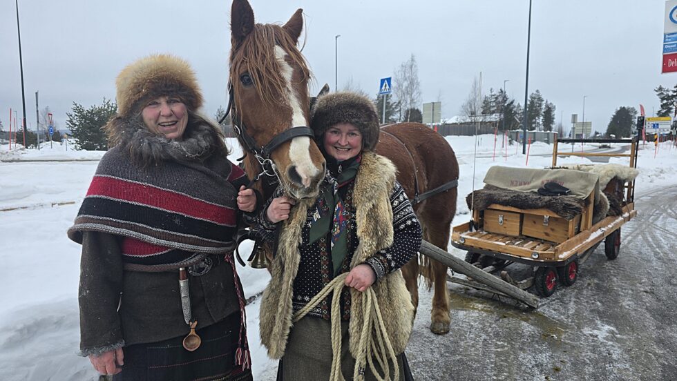 LANGTUR: Det er tradisjon for Hedemarken Lasskjørerforening å stoppe innom Løten, Elverum og Rena på tur nordover gjennom Østerdalen på sin ferd til Rørosmartnan. Liv Helen Enoksen (t.v) er turleder, mens Mona Elisabet Håkenstad har tatt turen fra Raufoss med hesten sin for å bli med på turen oppover Østerdalen.