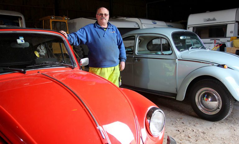 Odd-Erik kjører heller en av boblene sine enn den nye Audien. Så har han en buss, en traktor og en folkevognbuss. Det står ikke på utvalget hos bilentusiasten