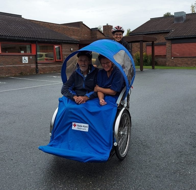 Røde Kors har en sykkel på Helsetunet og de håper at flere kan ha lyst til å bruke den