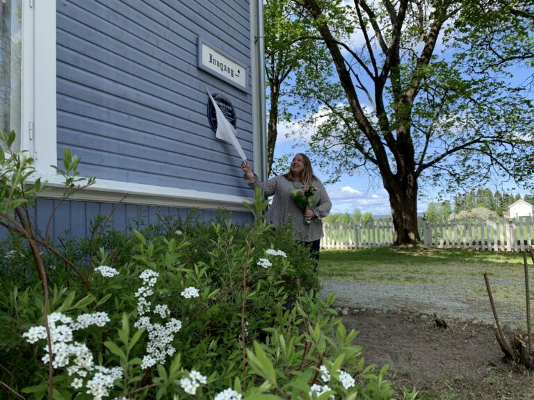 Den blå plaketten på Rosenlund markerer byggets posisjon i lokalsamfunnet