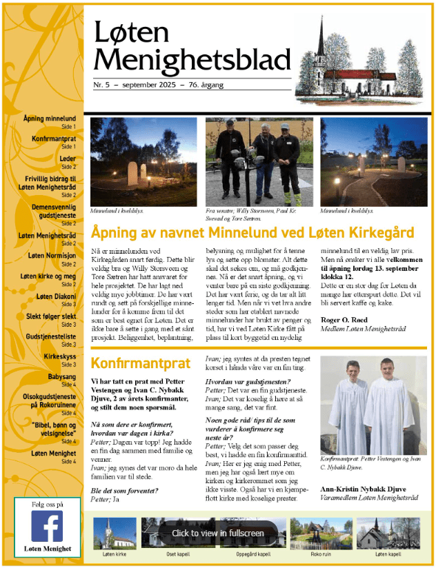 Løten menighetsblad Siste utgave Løten menighetsblad oktober 2025 Eldre utgaver Løten menighetsblad september 2025 Løten menighetsblad mai 2025