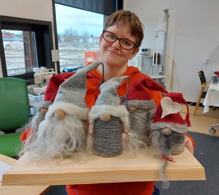Se, her er Virke-nissen. Den er blant produktene som Løten Virke har til salgs i førjulstida